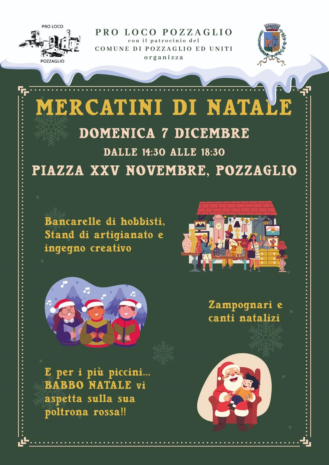Domenica 7 dicembre dalle ore 14:30 alle 18:30 in Piazza XXV novembre a Pozzaglio saranno presenti bancarelle di hobbisti, stand di artigianato e ingegno creativo.